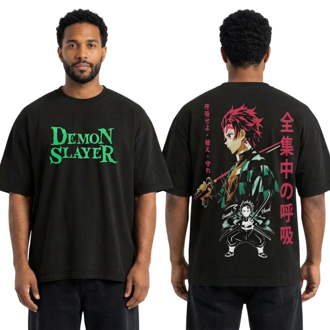 Camiseta oversize unisex inspirada en Tanjiro, con un exclusivo acabado vintage que le da un look auténtico y desgastado. Elaborada en algodón de alta calidad para mayor comodidad y durabilidad. Su estampado en serigrafía premium garantiza colores intensos y un diseño que perdura con el tiempo. Ideal para quienes buscan destacar con estilo urbano y esencia anime.