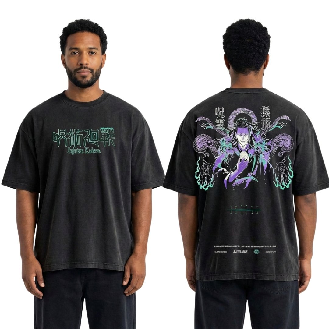 Camiseta oversize en algodón premium, inspirada en el mundo de Jujutsu Kaisen. Un diseño cargado de energía y poder maldito.