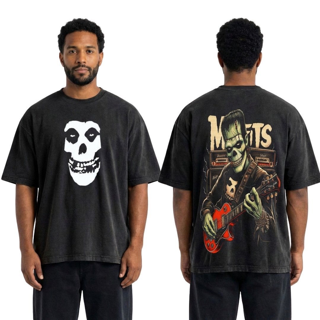 Camiseta oversize en algodón premium, inspirada en la icónica banda Misfits. Un diseño oscuro y rebelde que nunca pasa desapercibido.