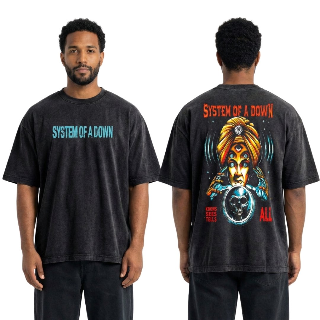 Camiseta oversize unisex inspirada en System of a Down, con un acabado vintage que aporta un estilo rebelde y auténtico. Confeccionada en algodón de alta calidad para mayor comodidad y durabilidad. Su estampado en serigrafía premium ofrece un efecto desgastado con colores intensos que perduran con el tiempo. Ideal para quienes viven el rock y buscan un look urbano con actitud.